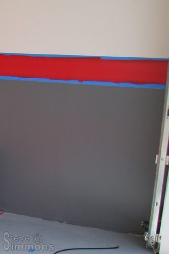 The next fun yet time-consuming project is painting the lower walls. Getting the lines straight all the way around is very difficult due to variations in the foundation, walls and floor. It needs to be very precise because several lines will be painted on and imperfections will be obvious. Care must also be taken to ensure sharp edges and to avoid bleeding colors between one another.
