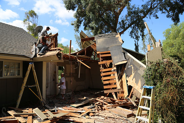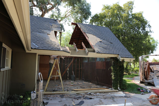 After preparing to have no garage for several months, we commenced with some serious garage carnage. All told we knocked down and hauled away about 58,000 pounds of material. Most of this was moved by hand, and there were never more than four people working. I shutter to think of how many calories were burned during this process.