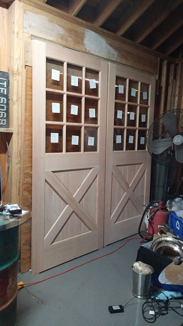 The doors begin to go up, on panel at a time. We decided to splurge on solid wood doors for their insulating properties against not only temperature, but sound. Happy neighbors are a good thing.