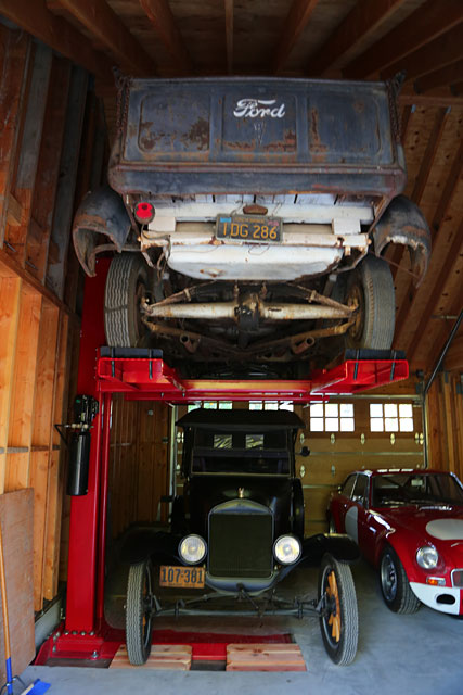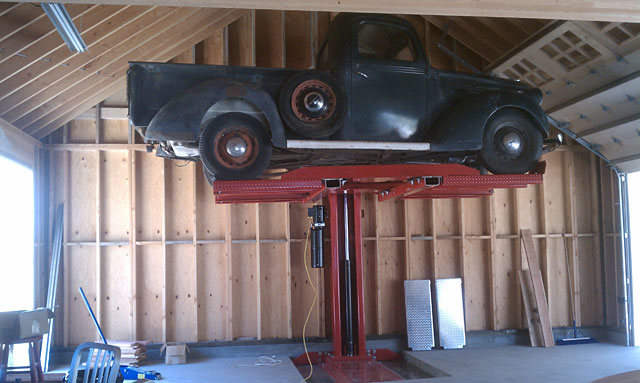The second lift is completed and the ’39 Ford is now up in the air, awaiting free time to finish it up. It may be waiting for a while. These ramps also proved much too small, so larger ramps were purchased and installed at a later time.