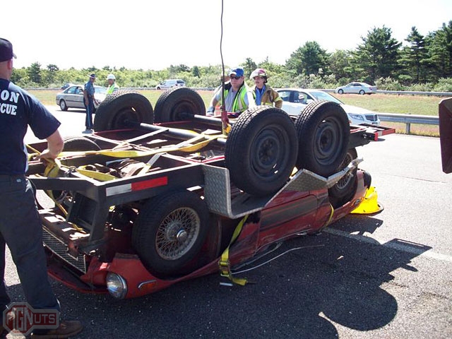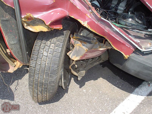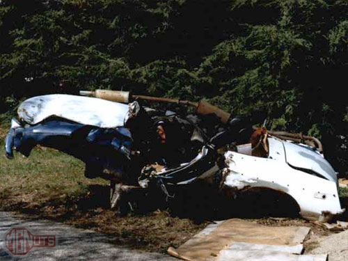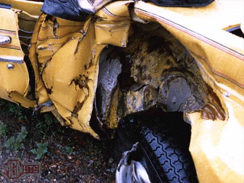 This 1978 MGB spun 180-degrees, went off the road and into the end of a guard rail. The driver suffered some back injuries but recovered. Photos courtesy Rich Stinchcomb.