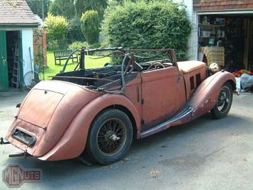 This 1938 MG VA Tickford DHC was a concourse-condition car before a fire destroyed it. The car can be seen in its former glory on the books pictured with it.