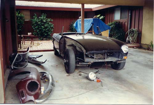 This was the start of the exterior restoration work. The original fender was damaged in a way that it would never be perfectly straight, so I bought an aftermarket one. Big mistake. It never fit quite right and my body guy spent a couple hours cutting and welding it so it would bolt onto the car correctly.